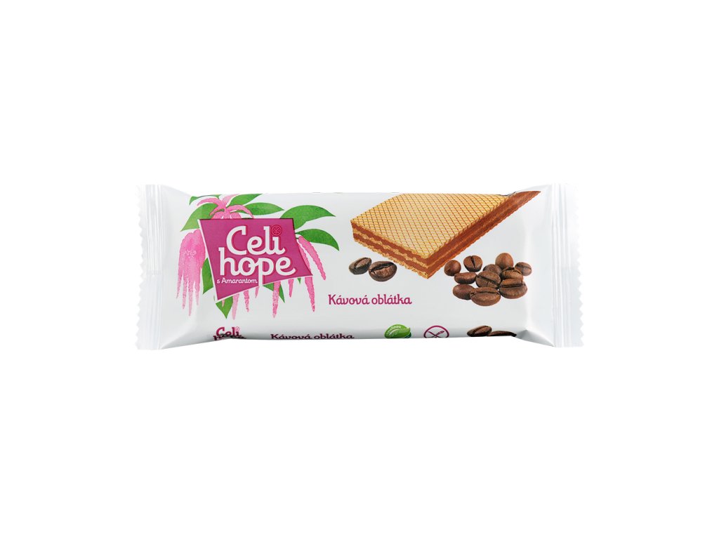 Kávová oplatka Celihope je bezlepková oplatka s krémovou kávovu náplní (76%) vyrobená z amarantové mouky, je zdrojem vlákniny a lysinu. Oplatka obsahuje kyselinu listovou, je vhodná pro celiaky a je rychlým zdrojem energie při fyzické zátěži, sportovních výkonech, v práci nebo při cestování.