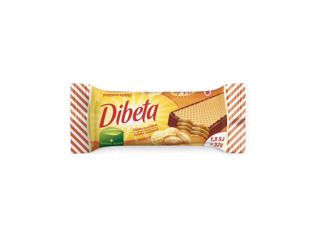 Arašídová oplatka Dibeta je oplatka s krémovou arašídovou náplní (64%) a kyselinou listovou, po obvodě máčená kakaovou polevou s fruktózou. Je vhodná k rychlému doplnění energie pro sportovce, při fyzické nebo psychické zátěži.