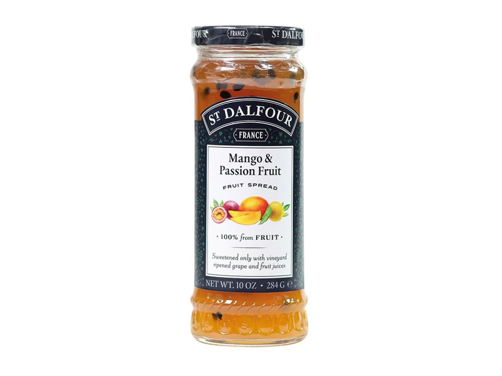 Mangový džem s maracujou od francouzské společnosti St Dalfour je pasterovaný výrobek vysoké kvality s velkým množstvím kvalitního ovoce, připravený podle tradiční francouzské receptury. Džem je jemně vařený pro uchování přirozené chuti ovoce, slazený pouze hroznovým vínem a ovocnými šťávami (džusy). 100gr džemu obsahuuje 51gr ovoce.