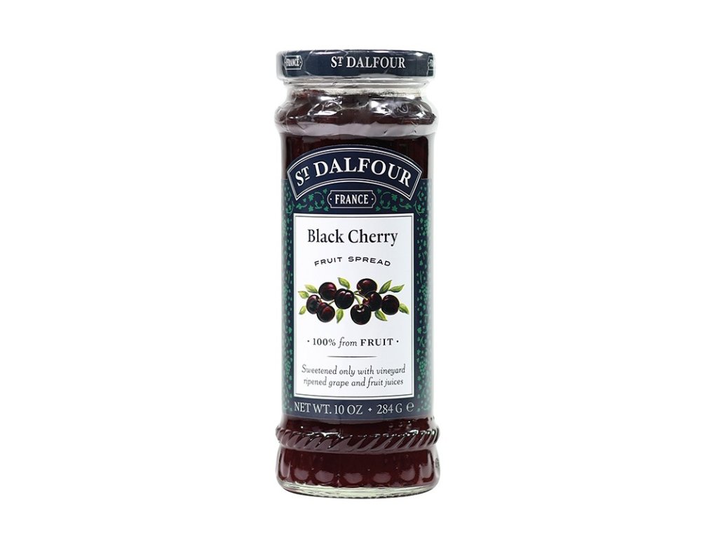 Třešňový džem od francouzské společnosti St Dalfour je pasterovaný výrobek vysoké kvality s velkým množstvím kvalitního ovoce, připravený podle tradiční francouzské receptury. Džem je jemně vařený pro uchování přirozené chuti ovoce, slazený pouze hroznovým vínem a ovocnými šťávami (džusy). 100gr džemu obsahuje 51gr ovoce.