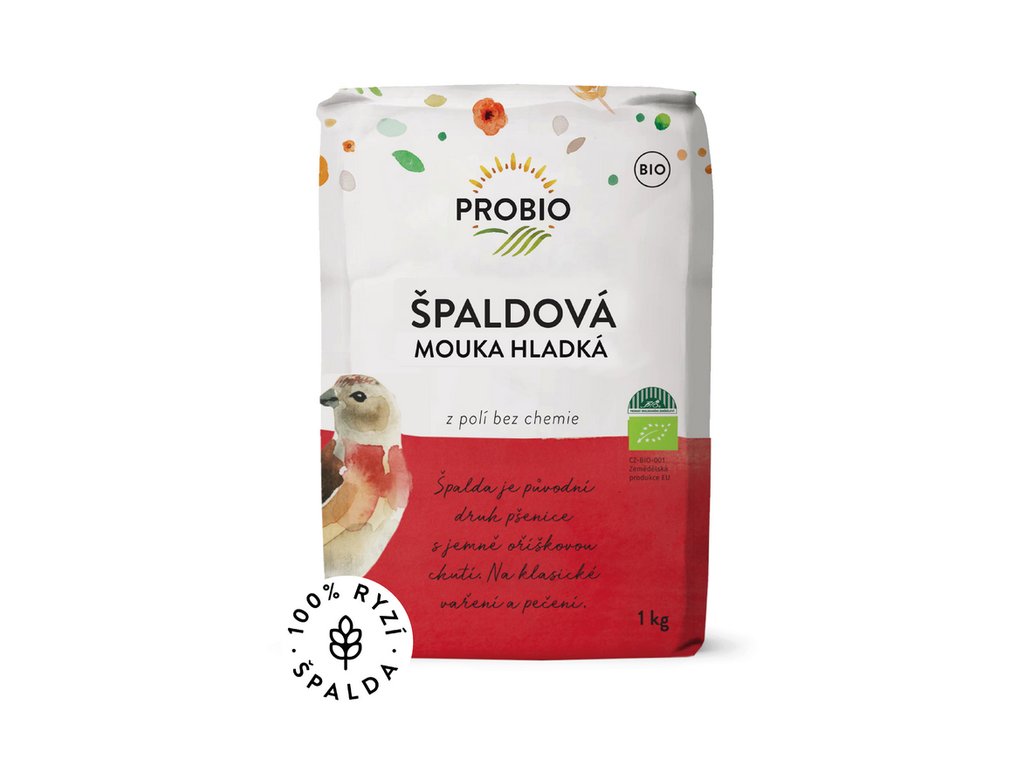Bílá špaldová biomouka hladká od společnosti PROBIO je mouka mletá s dlouholetou zkušeností (od roku 1992) z ryzí špaldy. Jejich technologie jim umožňují odebírat zrno téměř "přímo z pole" a zpracovávat jej od počátku tedy od čištění, přes sušení, mletí až po konečné balení mouky. Zrno je šetrně sušeno teplým vzduchem, čímž si konečný produkt zachová své živiny. Mouky nejsou mlety do zásoby a proto jsou vždy čerstvé a voňavé. Pšenice pochází z ekopolí, pěstována je šetrně, s ohledem na půdu, vodu, ptáky, hmyz..