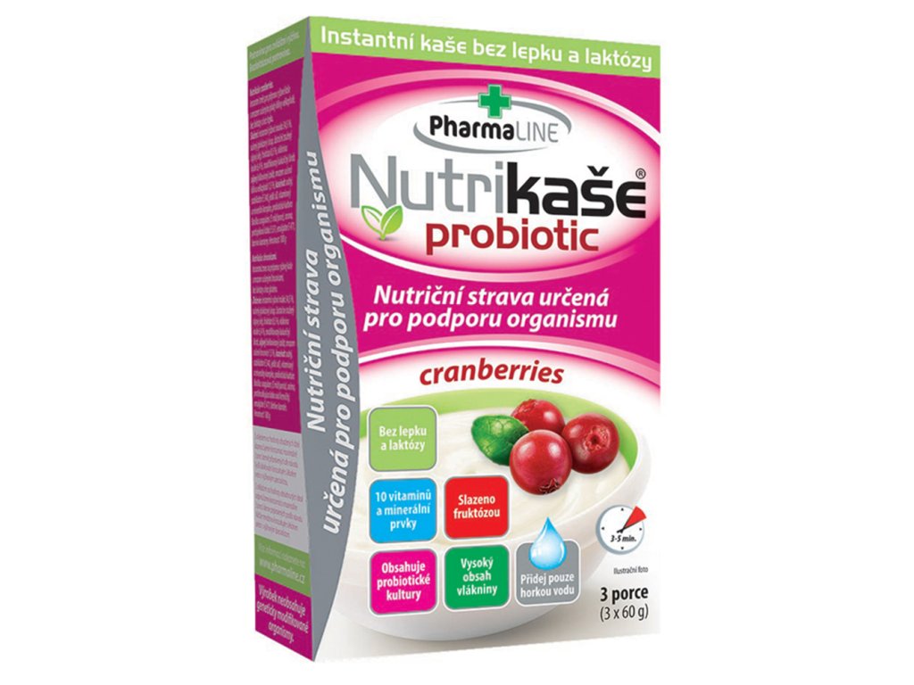 Nutrikaše probiotic s brusnicemi je chutná instantní rýžová kaše bez lepku a laktózy, s kousky mrazem sušených plodů klikvy velkoplodé Díky svému složení a propracované receptuře je vhodná jak pro jedince s výživovým omezením, tak pro zájemce o racionální stravování, rekonvalescenty nebo jako ekonomická alternativa ke snídani či svačině.