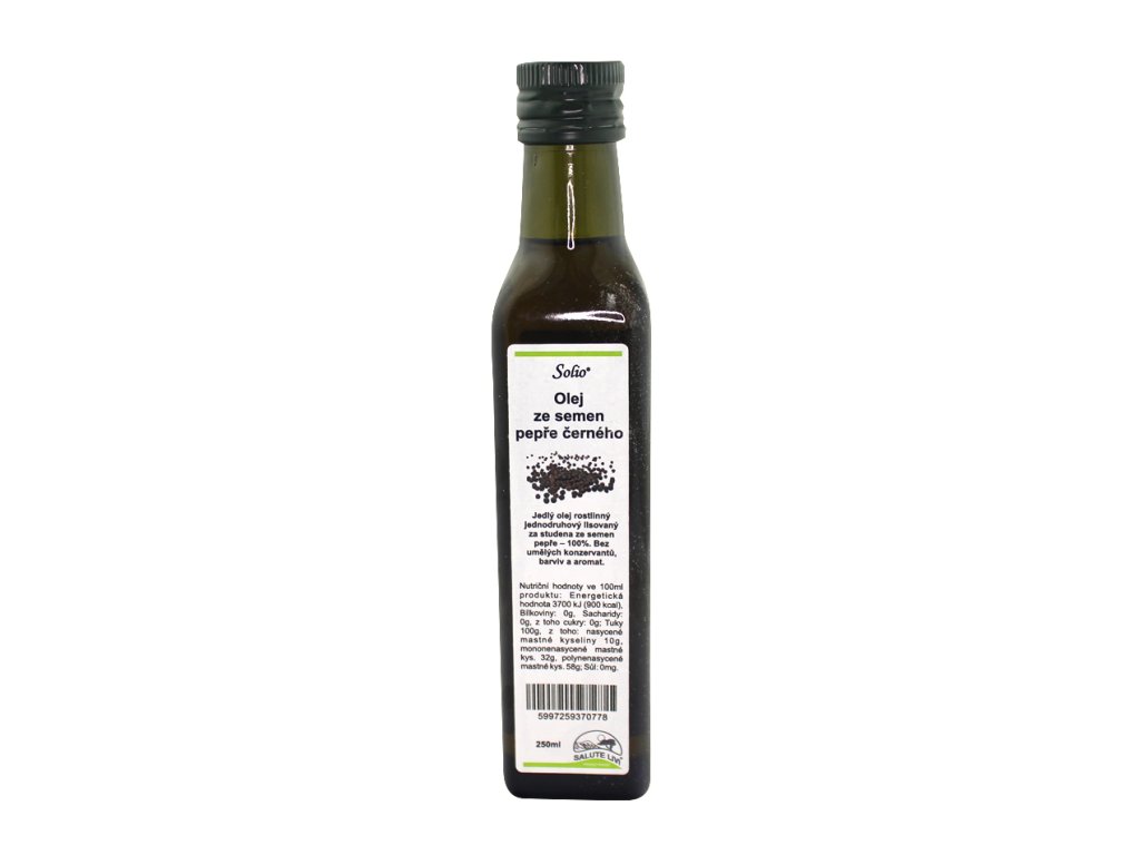 Pepřový olej je žlutavý až světle zelený olej lisovaný za studena ze semen černého pepře. Má výraznou pepřovou, pikantní a kořenitou chuť. Obsahuje nenasycené mastné kyseliny (hlavně olejová a linolová), antioxidanty (vitamin E, polyfenoly) a alkaloid piperin, který dodává oleji typickou ostrou chuť a stimulační účinky. Má prohřívací a antioxidační vlastnosti.