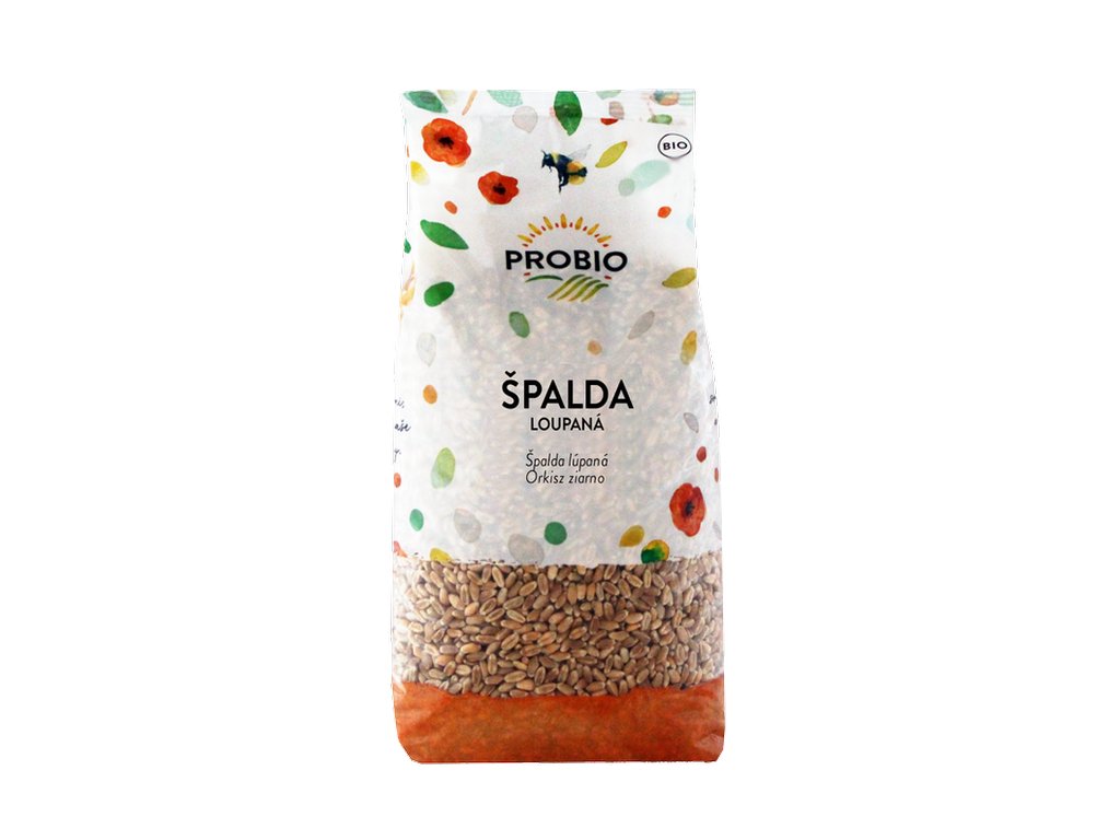 Špalda loupaná je jedna z nejstarších původních obilovin. Má podobné složení jako klasická pšenice, ale v porovnání s ní je nutričně bohatší. Obsahuje více bílkovin, minerálních látek, vitamínů skupiny B a její vláknina je lépe a snáze stravitelná. Špalda společnosti PROBIO je vypěstovaná v ekologickém zemědělství, bez chemie, bez zásáhů do přirozeného ekosystému od sklizně zrna přes jeho zpracování, tedy čištění a sušení až po balení. Sušeno je šetrně teplým vzduchem a konečný produkt si tak zachovává své živiny.